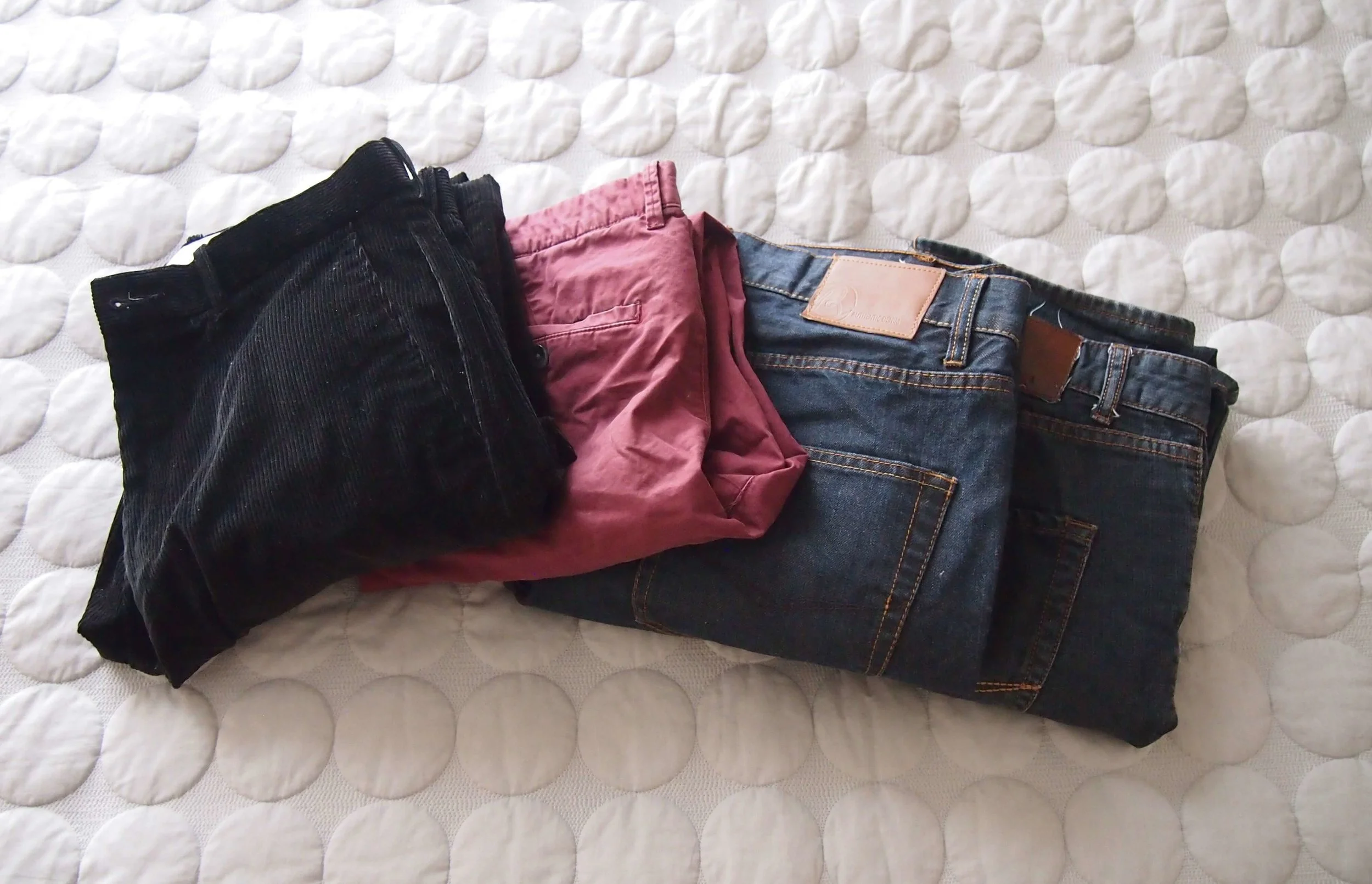 数えたら夫のユニクロパンツが10着。新たにユニクロパンツを買い足したいと言うわけで3着手放しました。ユニクロ商品の寿命見極め判断の目安となるタグの見方も一緒にご紹介します。