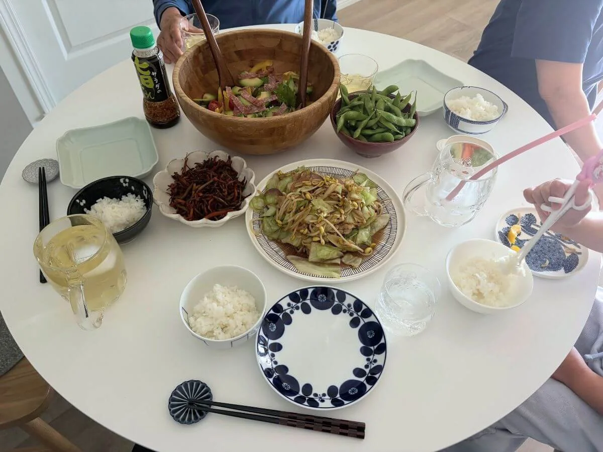夫と娘が不在時の、私と両親だけの3人の食卓はこんな風景。