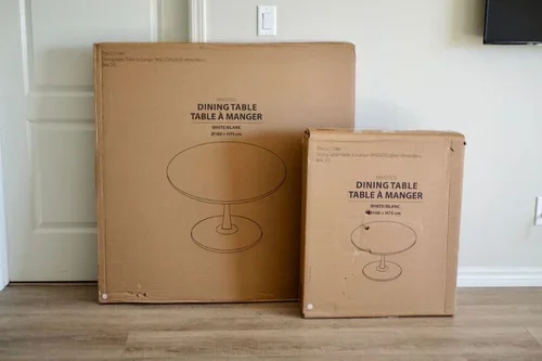わが家の場合、一本脚の100㎝天板丸テーブルを選んだので