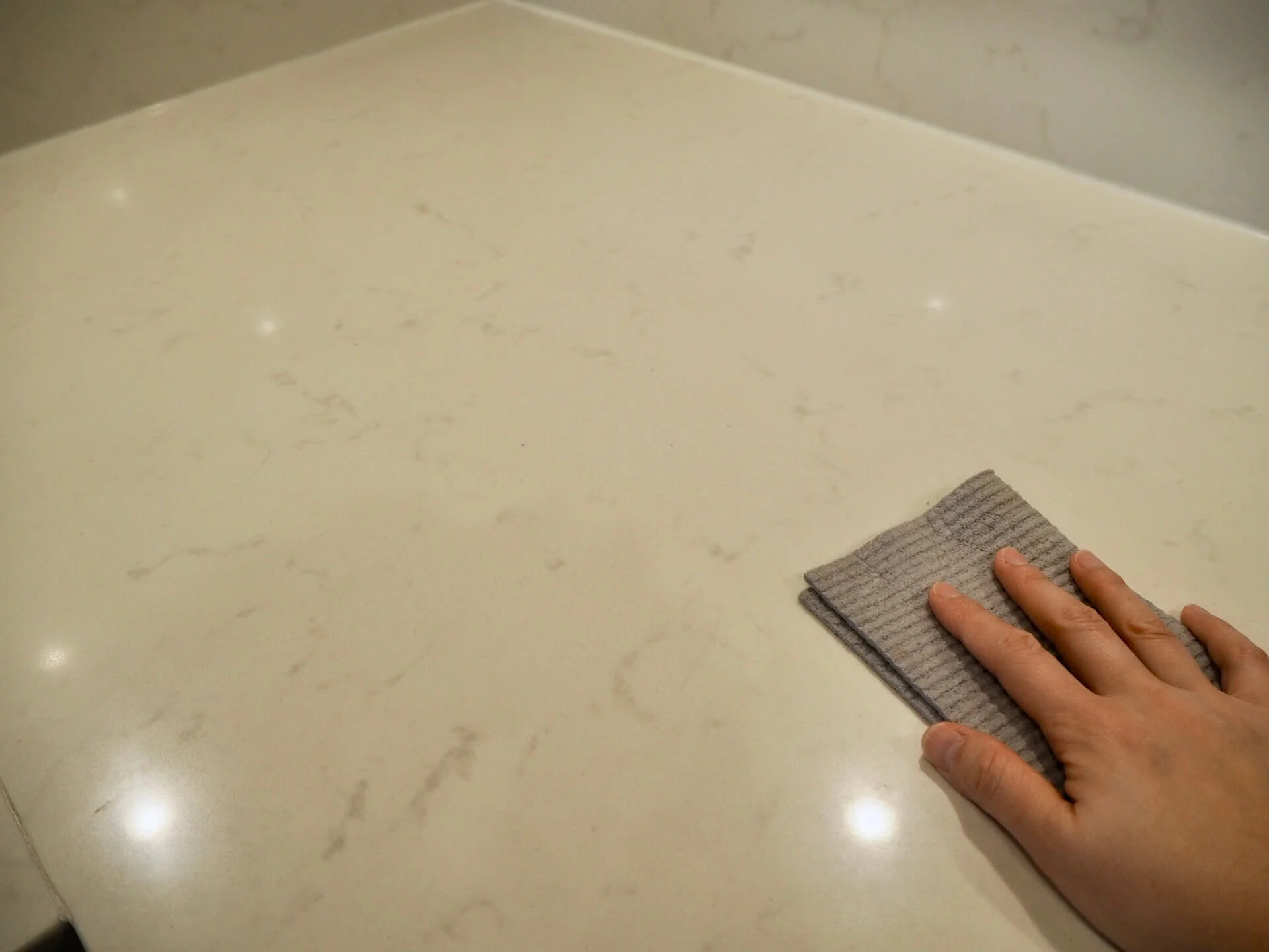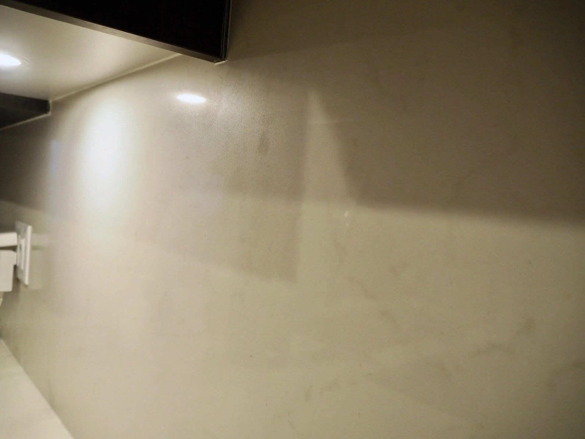 ちなみにわが家のキッチンワークトップと壁の素材はクォーツストーン。