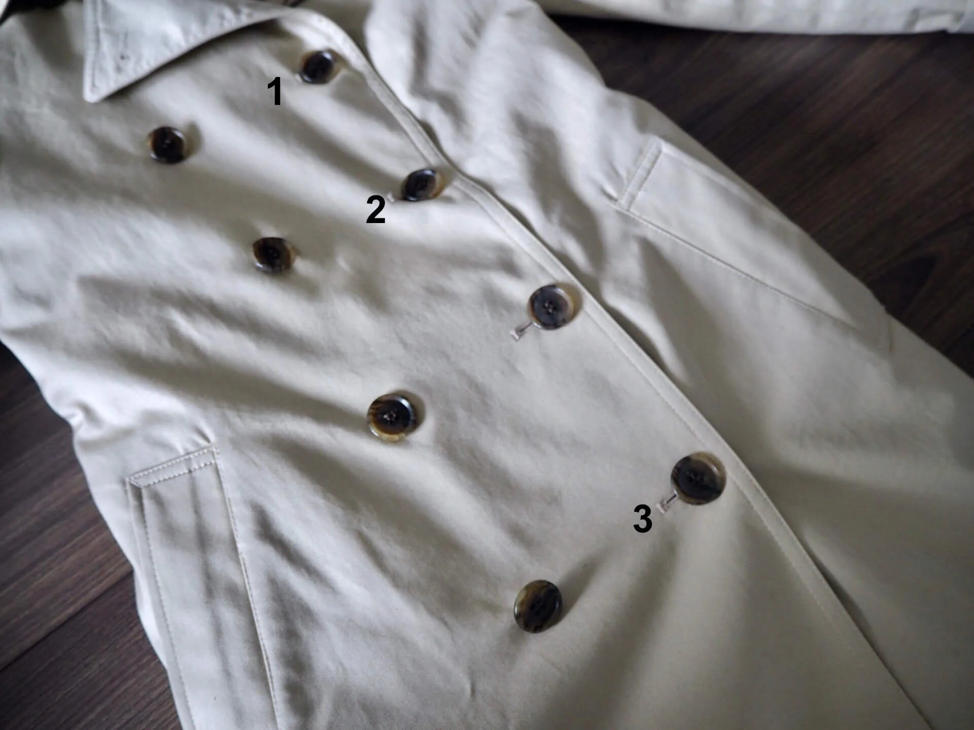 トレンチコートは前のボタンが3つもゆるかったので付け直し作業に時間がかかりましたが