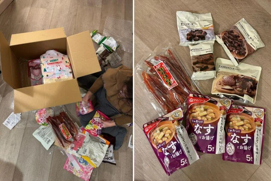 私はフリーズドライの味噌汁や無印のお菓子が、地味にめっちゃうれしい。(大事に食べよ♡)