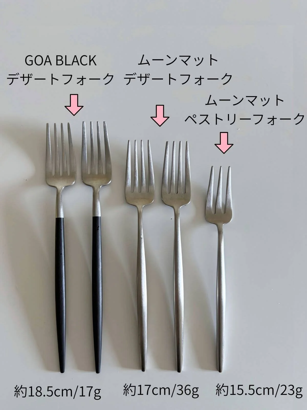 実際に3種類のフォークを置くと