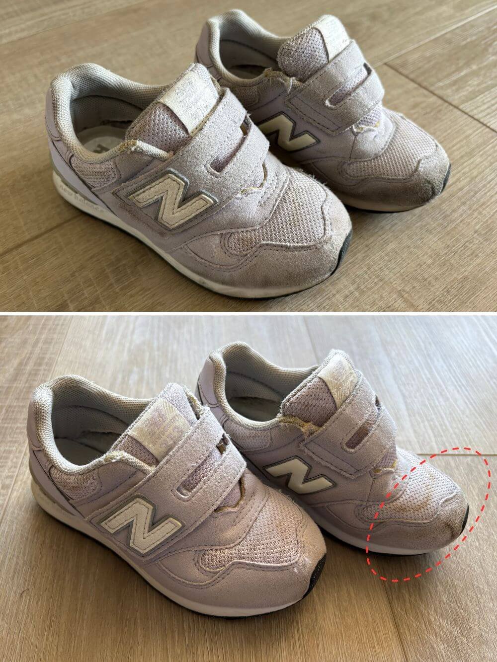 娘が掃除し始めたニューバランススニーカー。