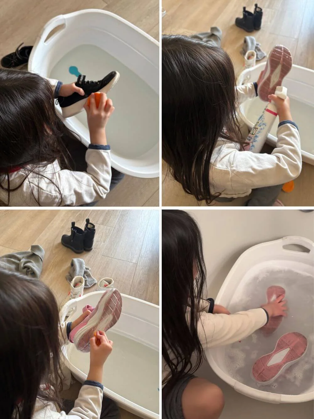 娘にやり方を教えながら、一緒に4足のスニーカーを丸洗い。