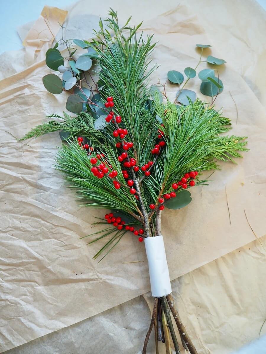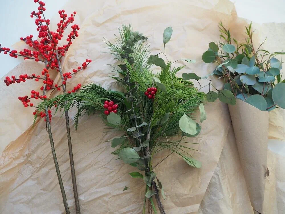 松やシダー、ユーカリなどを使ったクリスマス用の花材