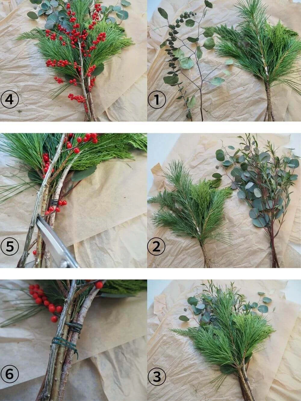 クリスマススワッグと同様の手順で簡単に束ねただけ。
