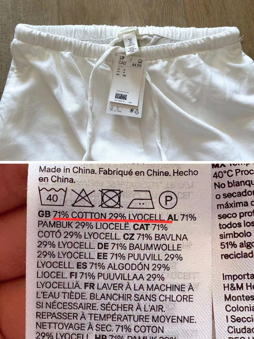 ちなみに今回買ったワイドパンツの素材は