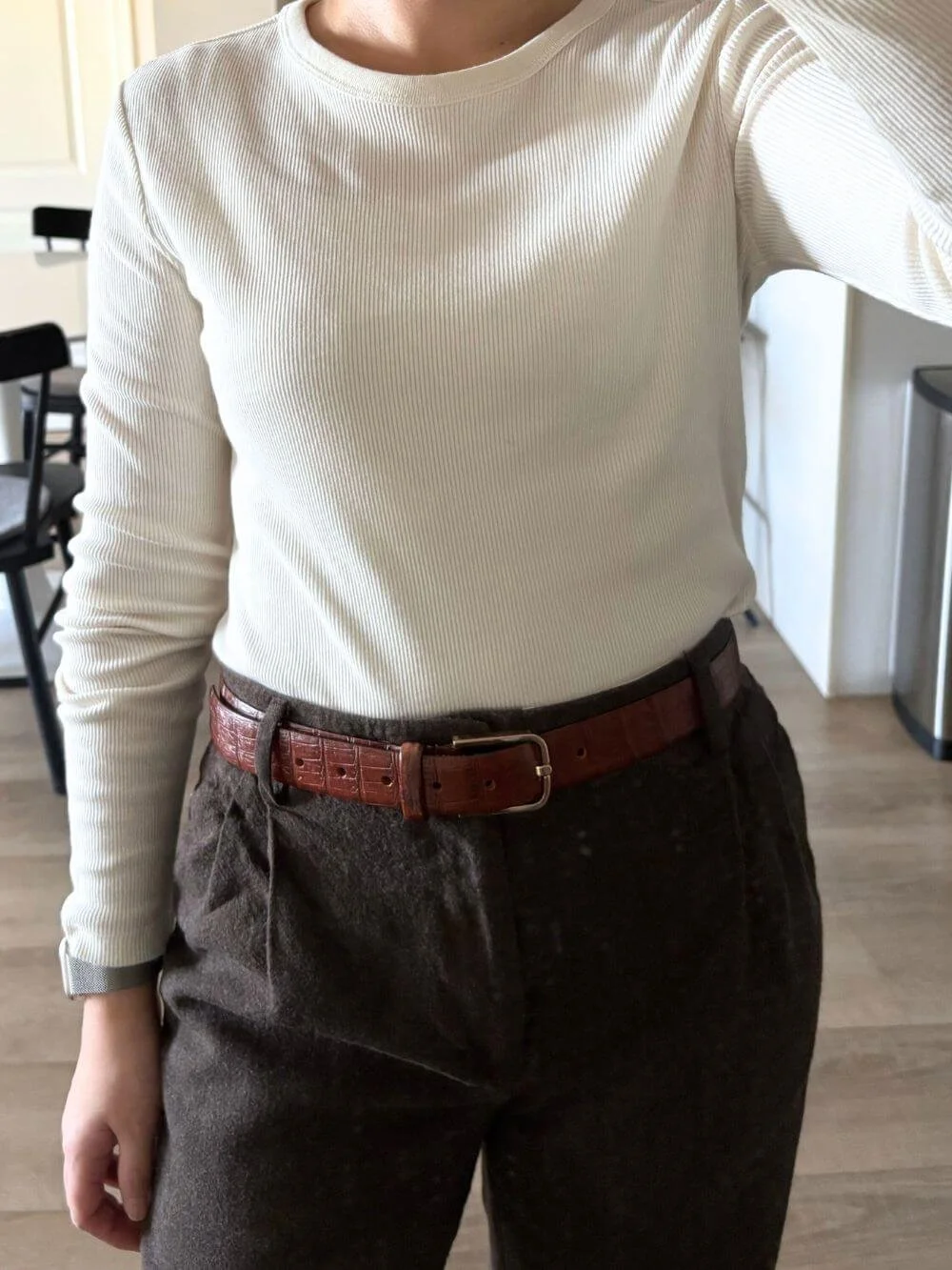 伸びのある生地なので、洗濯後もサイズ感がちょうど良く着れて◎