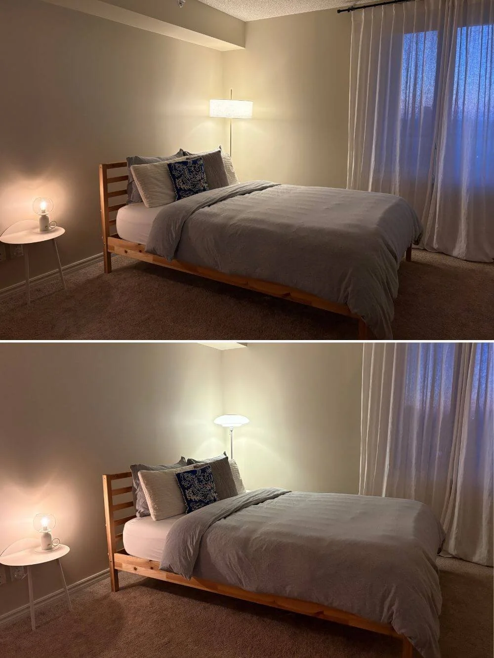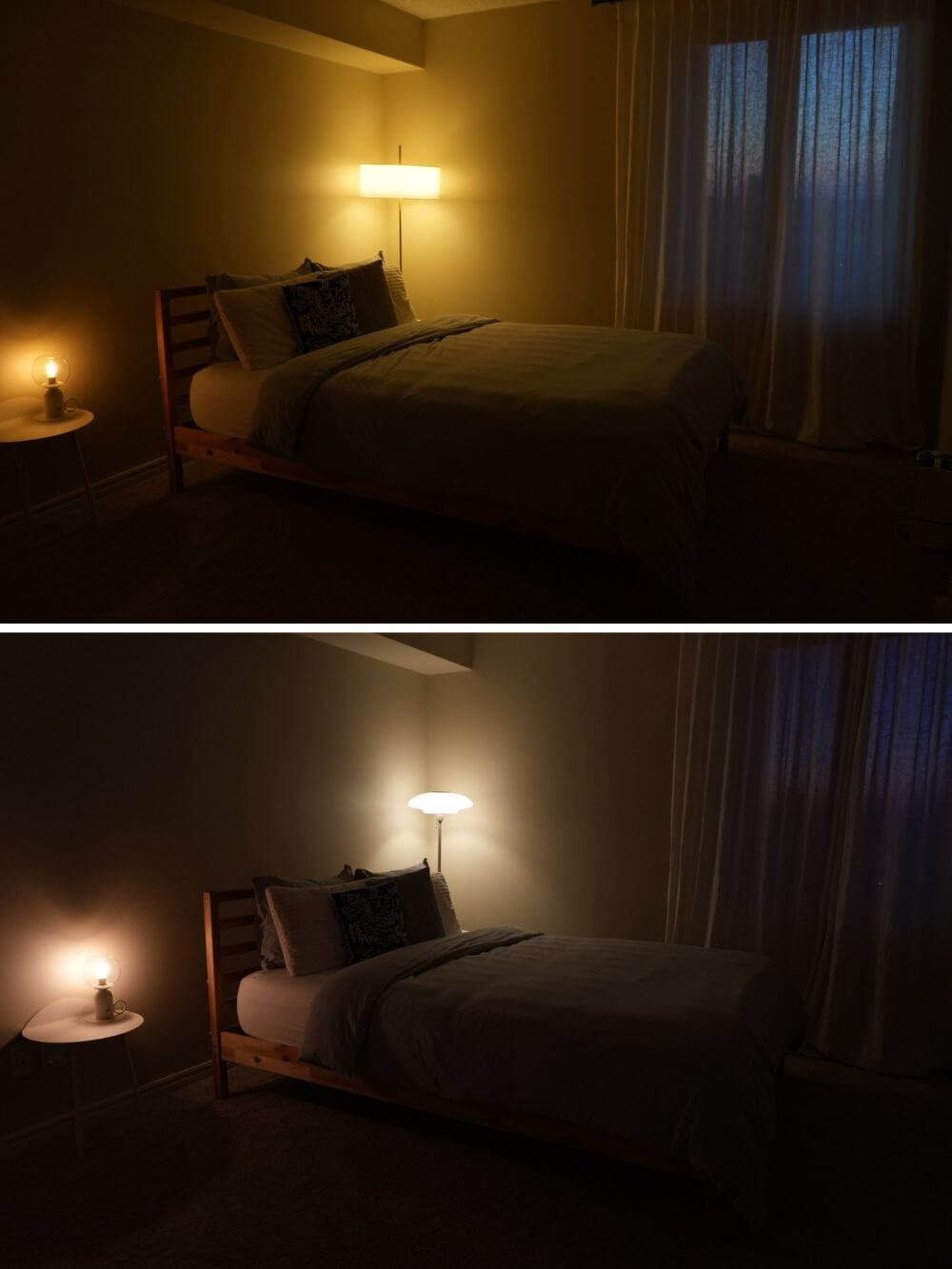 明かりをつけず、寝室に置いて比較