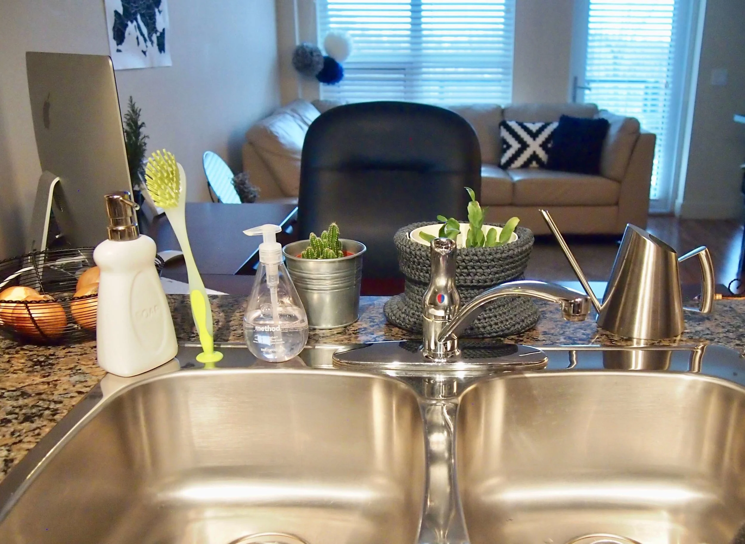 ちなみにジョウロはキッチンカウンターの端っこに移動させました!(Macに隠れてしまってますが)