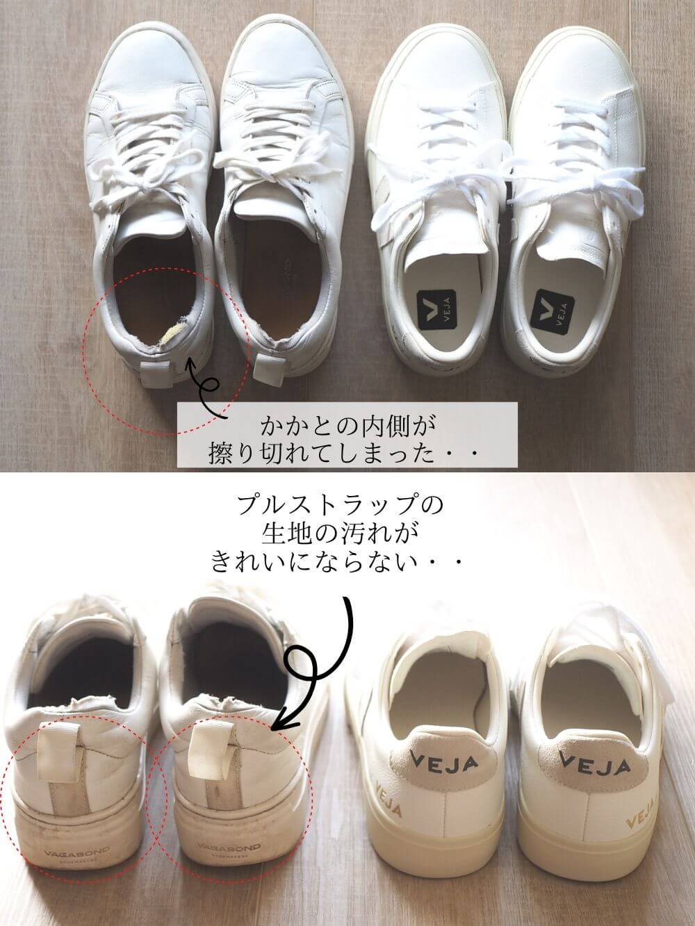 ちなみにこれまで愛用していた白スニーカー(写真左)は