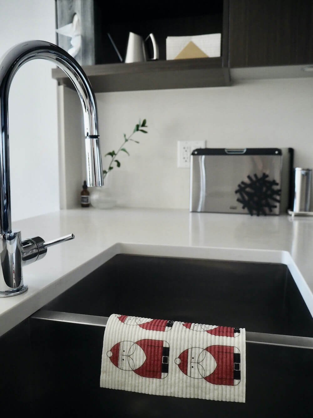 このサンタふきんと新しい木の柄の両方を今年は使ってみることにしました。