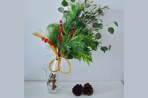 水引が少なくても華やか!クリスマス花材を使い回すお正月アレンジ